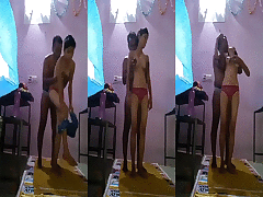 College student indulges in sensual home sex
